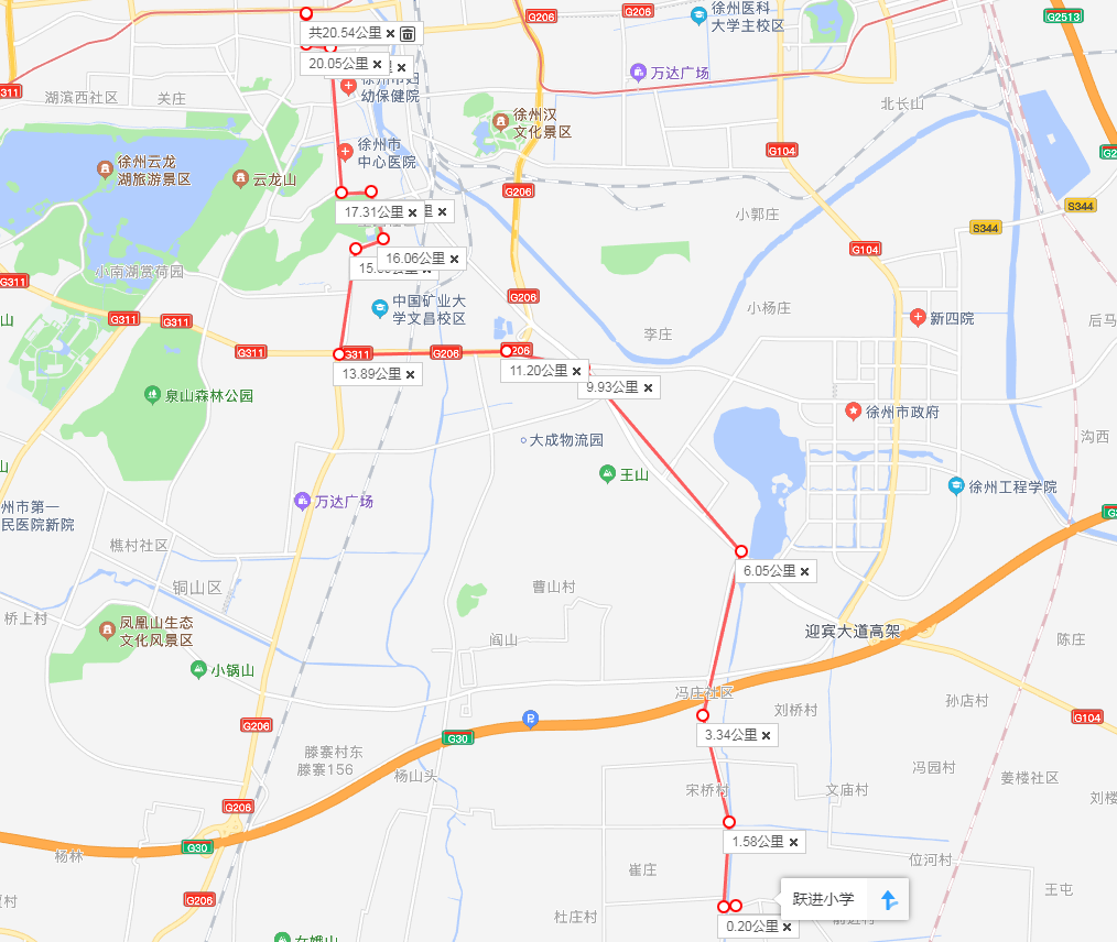 (1)線(xiàn)路走向:大彭鎮(zhèn)-G310-礦山路-工農(nóng)北路-淮海西路-淮海東路-彭城路-青年路-中山南路返回