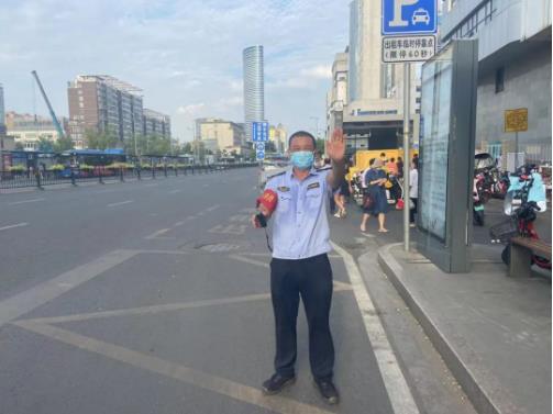 工作時,王軍全神貫注,每天準(zhǔn)時守候在公交站臺,竭盡全力服務(wù)好每一位乘客。下午4、5點(diǎn)的站臺上,一股股熱浪從路面騰起,炙熱的陽光照在身上猶如蒸籠一般,站臺上的王軍仍堅(jiān)持仔細(xì)檢查每一位乘客的“兩碼”。