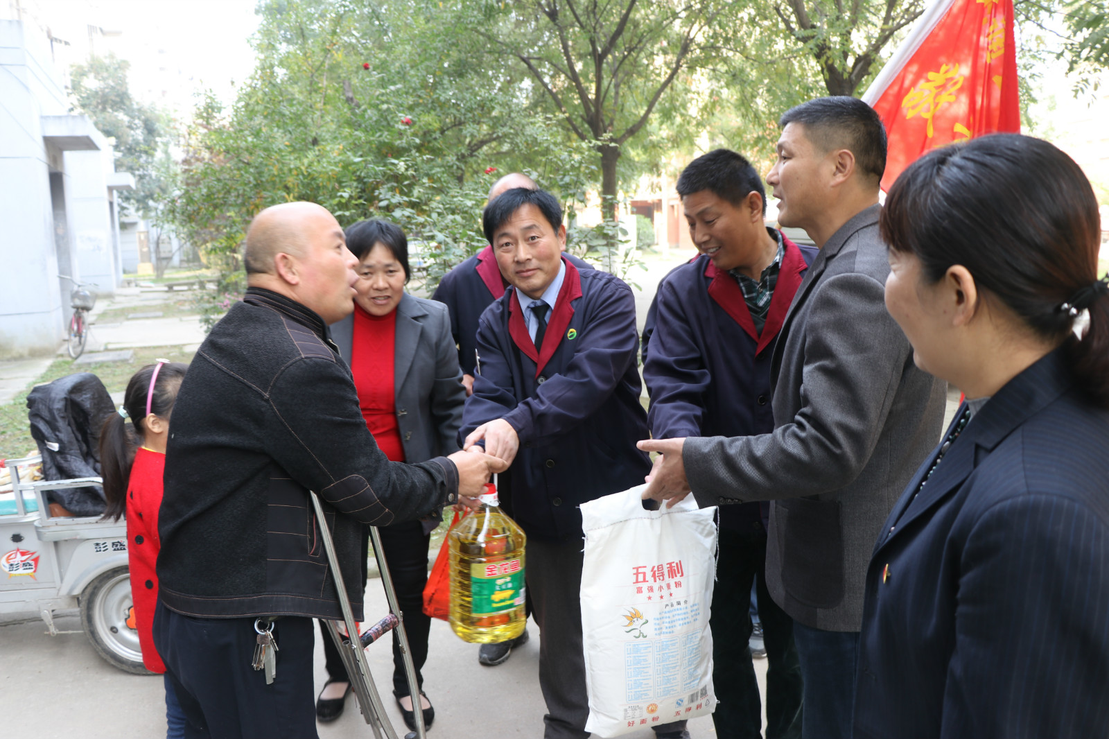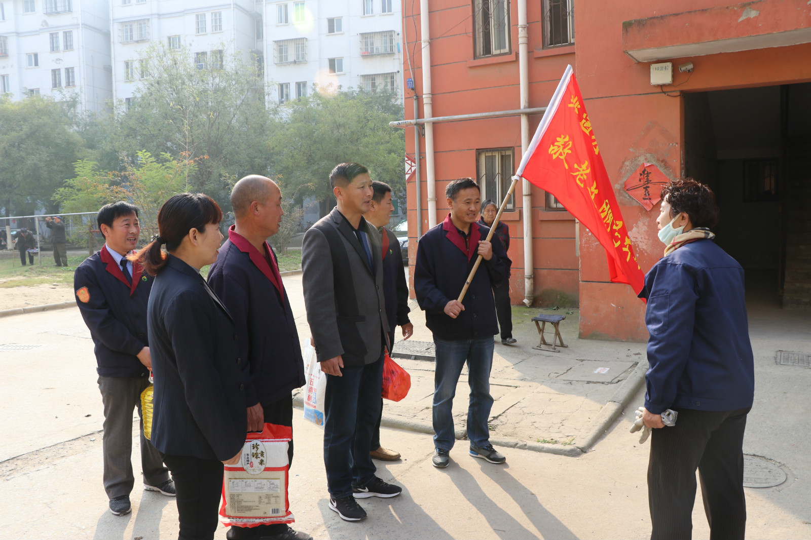 10月28日重陽(yáng)節(jié),全國(guó)“敬老文明號(hào)”14路線志愿者服務(wù)隊(duì),來到惠民小區(qū)開展“雙關(guān)愛”活動(dòng),關(guān)愛空巢和半失能老人,來到“一對(duì)一”結(jié)對(duì)幫扶的張金富、張金設(shè)、劉云強(qiáng)等4位失能和半身能老人家中,為他們送去了米、面、油等生活品。