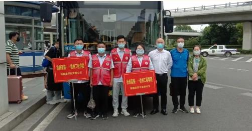 同時(shí),為了服務(wù)好學(xué)生返校,新城公司組織雷馳平安志愿者服務(wù)隊(duì)在徐州東站出口處集結(jié),隊(duì)員們高舉引導(dǎo)牌,迎接工程學(xué)院學(xué)子的到來?,F(xiàn)場(chǎng)幫助學(xué)生們提箱子拿行李,測(cè)體溫,查驗(yàn)“兩碼”,引導(dǎo)學(xué)生有序上車。并在車內(nèi)備有應(yīng)急藥箱、消毒濕巾、口罩、飲用水等物資,受到學(xué)生們的一致好評(píng)!
