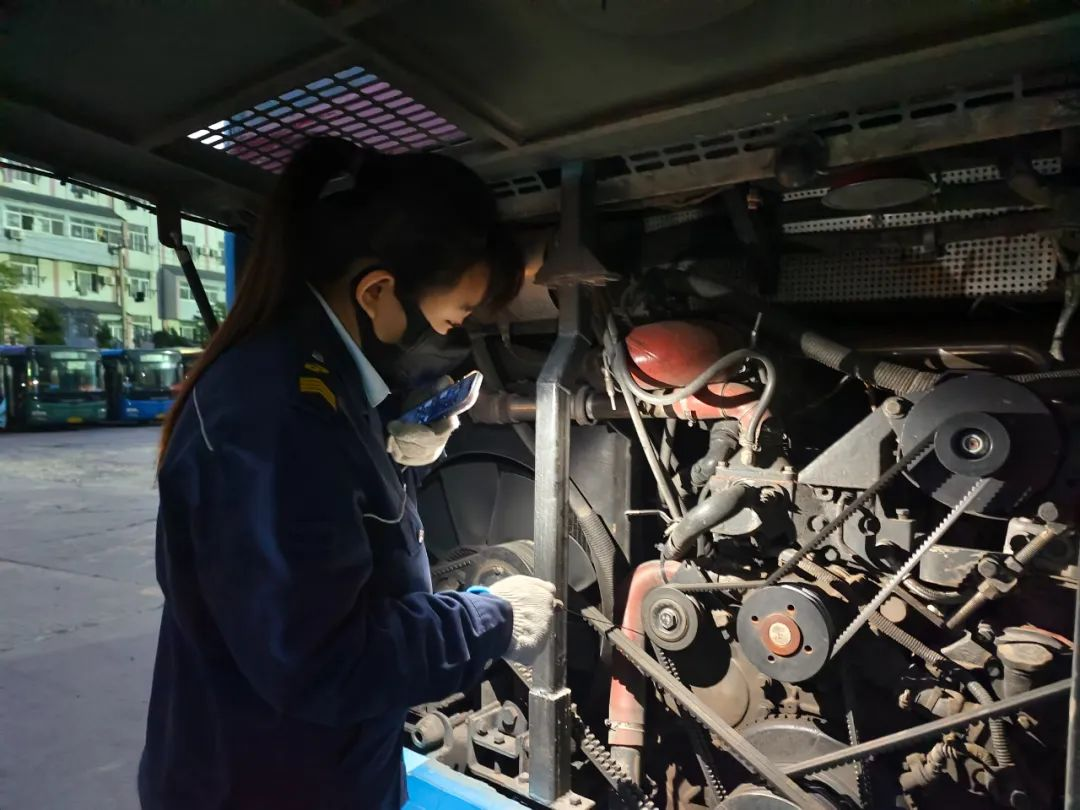 為確保線路正常運營,修理工有條不紊地排查車輛故障原因,盡快修復故障,只是為了減少乘客候車時間,讓乘客準點坐上安全放心車。