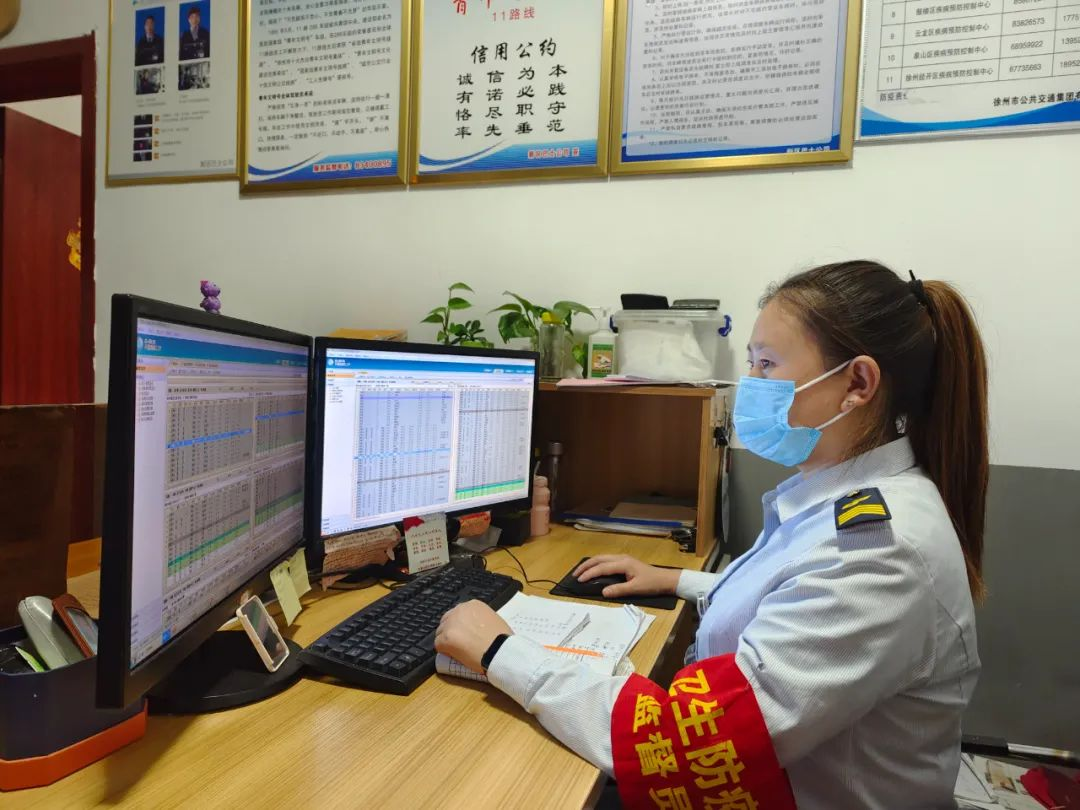 天還未亮,19路調(diào)度室里燈火通明,調(diào)度員黃靜已經(jīng)打開電腦開始了一天的工作,駕駛員陸續(xù)到達,車隊運管員鄒晶一邊叮囑著駕駛員安全注意事項,一邊對其進行酒精測試,一切井井有條,忙而不亂。首班車駕駛員紀彤仔細檢查車況、消毒、通風等情況,車上、車下絲毫不敢疏忽,做好出車前的準備。