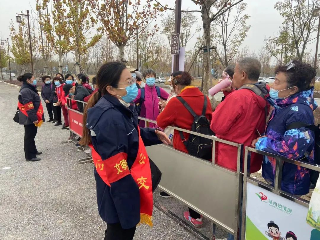 徐州園博園開園以來,周邊人流、車流劇增,針對客流量的變化,徐州公交服務(wù)督導(dǎo)隊在高鐵、音樂廳、人才家園、園博園停車場等4處設(shè)置臨時督導(dǎo)崗點(diǎn),嚴(yán)格按照疫情防控要求,維護(hù)好乘客上下車秩序,確保游覽園博園的市民順利出行,用實際行動傳遞文明新風(fēng)尚,營造人人參與的文明城市創(chuàng)建良好氛圍。
