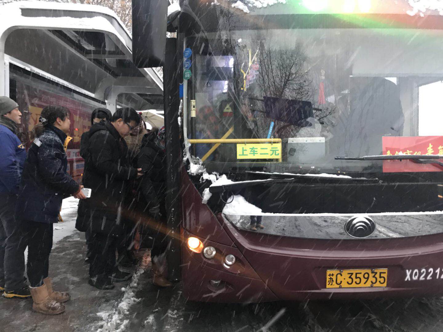 為保證冰雪嚴(yán)寒天氣公交車運(yùn)力正常,公司提前對2300余輛公交車進(jìn)行了安全性能的全面普查及換季保養(yǎng)作業(yè)項目,進(jìn)一步加強(qiáng)車輛的日常維護(hù)及“三檢”,嚴(yán)格執(zhí)行維保規(guī)范,確保車輛設(shè)備的防凍液冰點(diǎn)值不低于-15℃,并提前更換了-10號柴油,防止燃?xì)廛囕v冰堵。修理人員冒著風(fēng)雪,手凍得通紅仍堅持在現(xiàn)場搶修車輛;智能調(diào)度平臺利用3G視頻實時監(jiān)控線路運(yùn)營情況,利用車載語音不斷播放安全提示,做好雪天行車安排;公交出租450輛出租車全部出車……4日晚,市區(qū)雪深已達(dá)375px,氣溫-7℃。大雪造成高鐵晚點(diǎn)6小時,10路線立即增派7輛加班車增加24個班次,直至5日凌晨4:07最后一班車發(fā)車,堅決不滯留一名乘客,全力保障了雪天市民的安全出行。