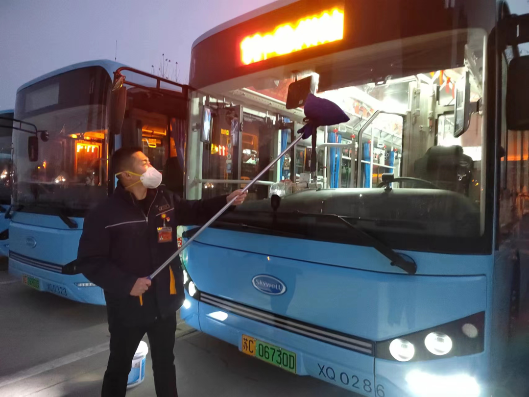 王海芬跑的這條線路,穿過數(shù)條主干道,經(jīng)過工人醫(yī)院、兒童醫(yī)院等一個個醫(yī)療中心。“這幾天有一位乘客,兒子剛動完手術(shù),他每天要到醫(yī)院送飯。每次上車,我們都會互相寒暄幾句,心里也暖暖的。”為了自己的健康也為了他人的健康,王海芬利用休停時間把座椅、扶手等地方用消毒液進行擦拭,每一趟的間隙開窗通風(fēng),保證車內(nèi)空氣流動,她在車內(nèi)配備了藥箱,里面有口罩等防疫物資以備乘客不時之需。